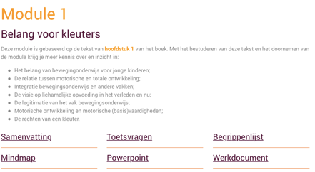Door op een titel van een werkvorm te klikken, bijvoorbeeld samenvatting of mindmap kom je direct bij het gewenste onderdeel. De informatie is direct beschikbaar